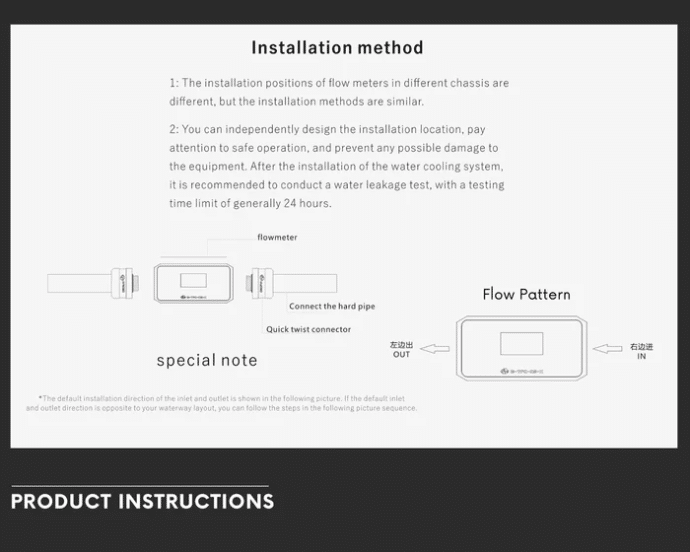 The Bykski Inline Flow Meter and Thermometer Safety Module offers a real time reading of your inline flow rate. The in-line block uses industry standard G1/4 fittings. The safety module also features real time temperature reading as well making it a complete safety device. The inlet and outlet are specific but can be changed manually. The all black visual design is stunning and will match easily in custom layouts!