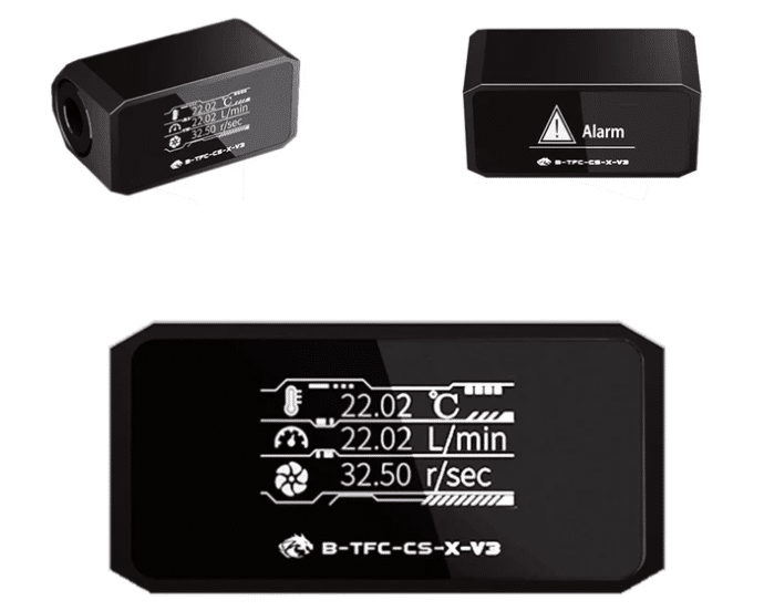 Bykski B-TFC-CS-X-V3 Flow Meter and Thermometer Safety Module w/ OLED Display V3 – Black